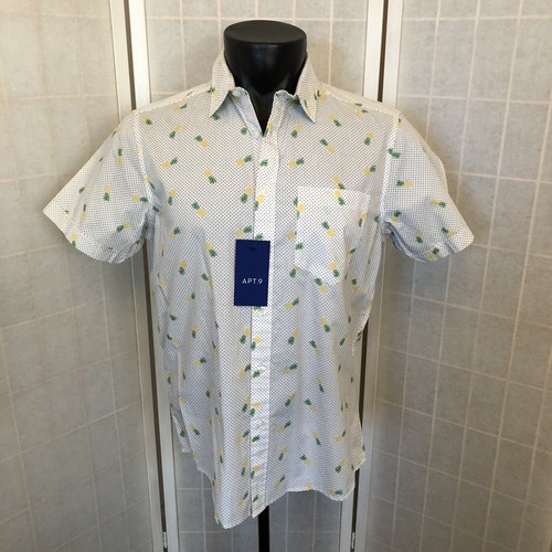 Apt 9 Shirt Small Mens White Button Down Black Polka Dot Yellow Pineapple Kohls Ebay